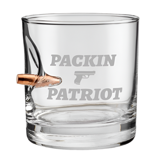 Packin Patriot Bullet-Embedded Whiskey Glass – 11 oz